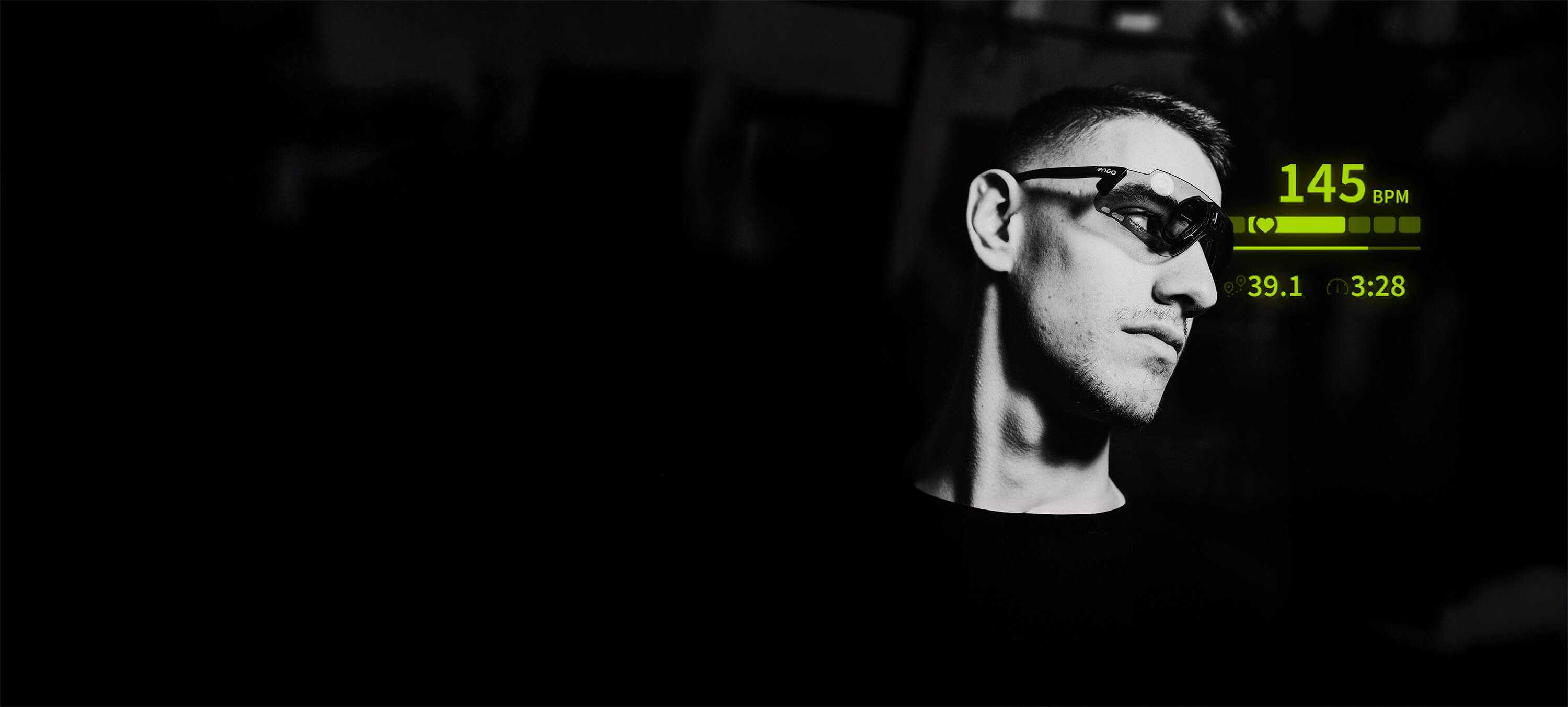 World's lightest smart eyewear. Add photochromic lenses to train through every condition—pre-dawn to high noon—without swapping glasses.