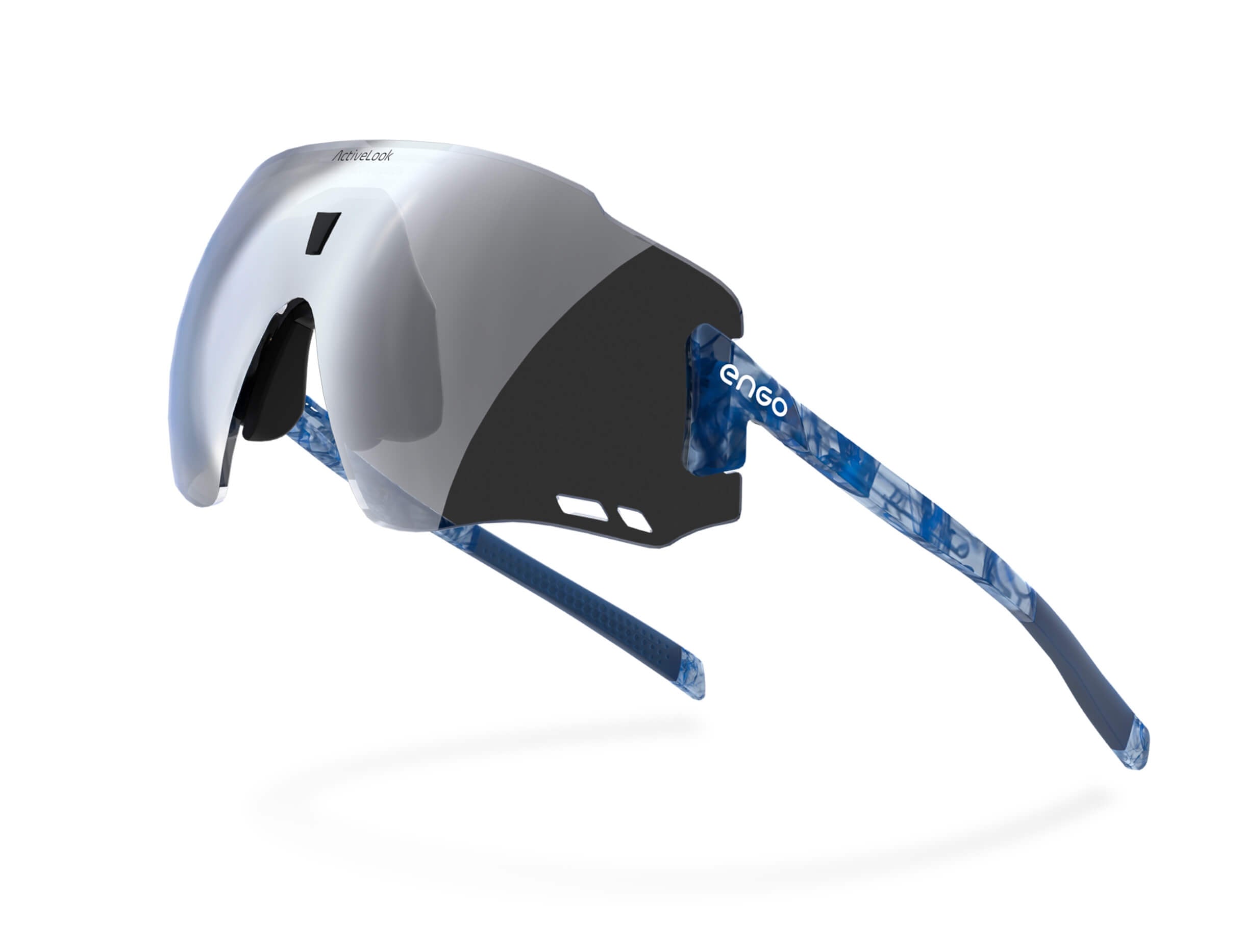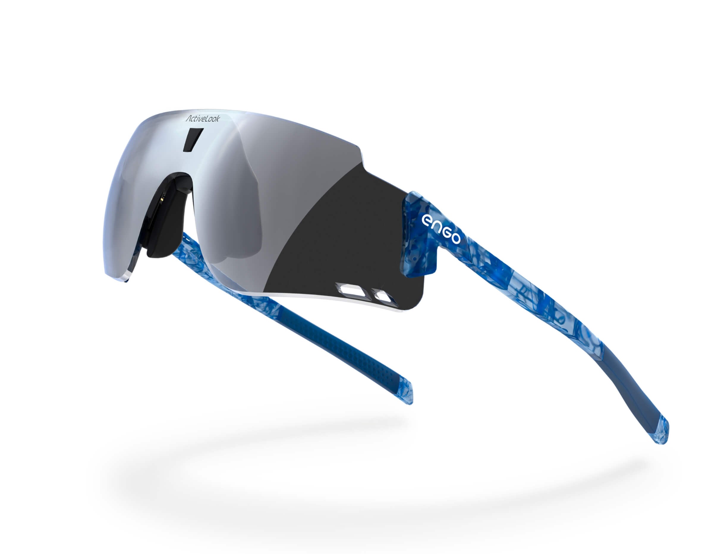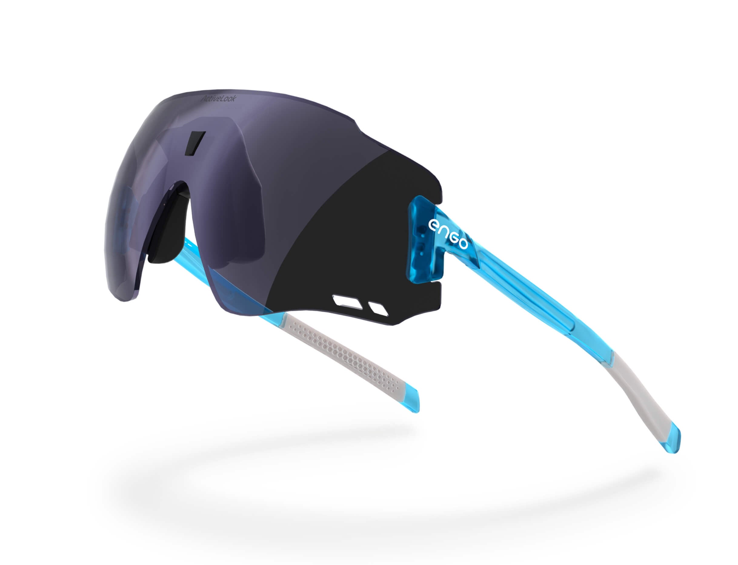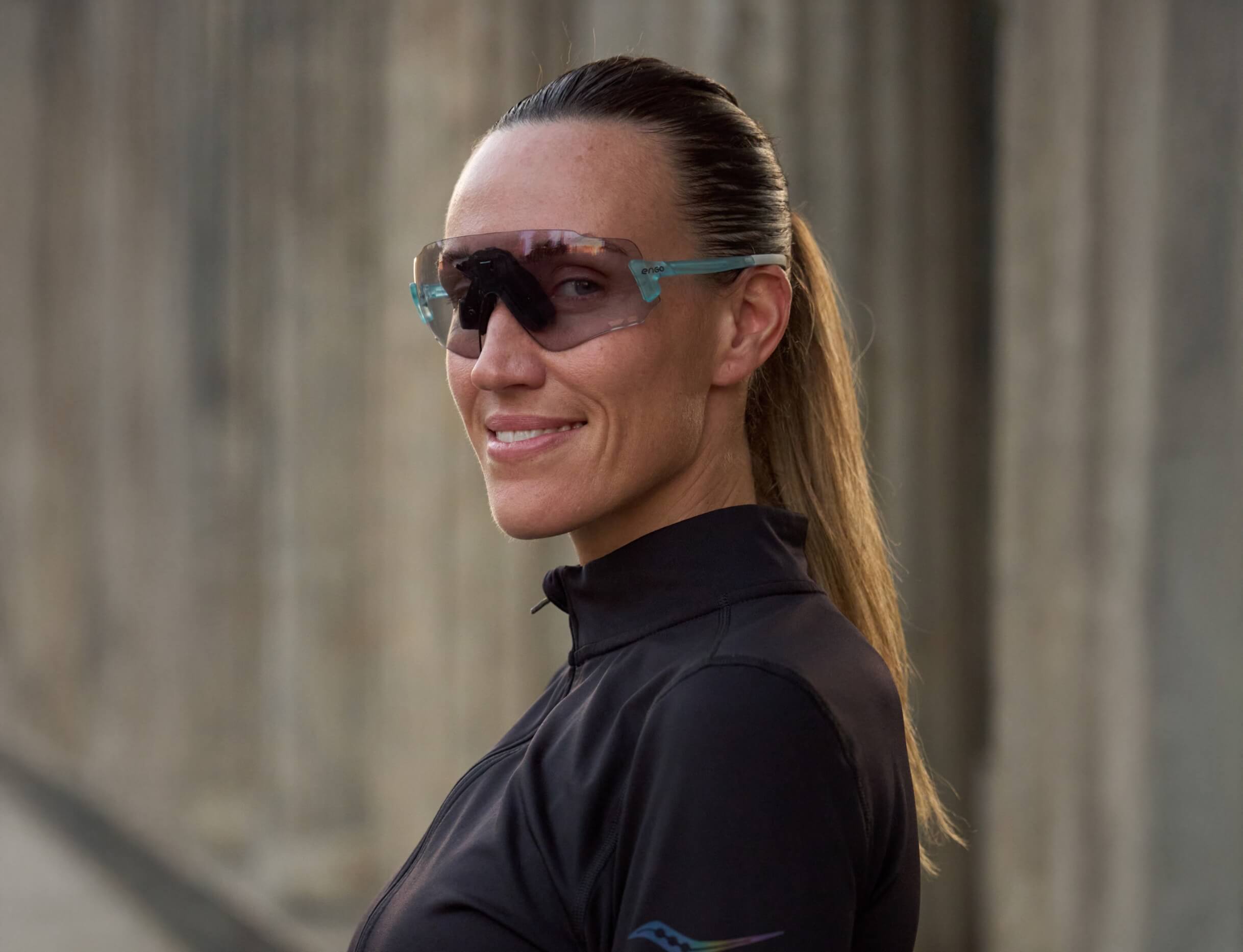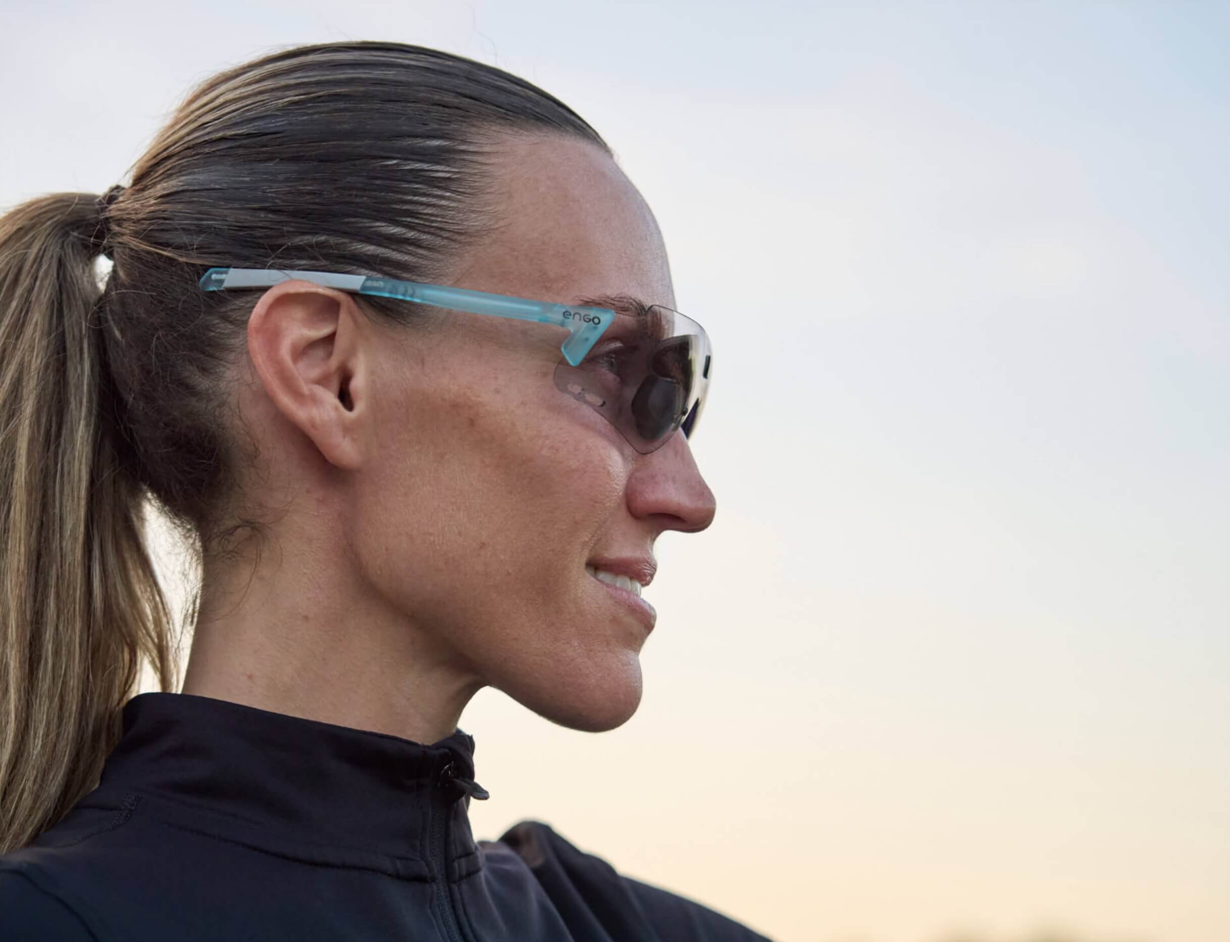 The ENGO display sits slightly left in your field of vision, like reading a road sign without turning your head. Available for your right eye, it's there instantly when you need data, invisible when you don't. Your brain naturally filters it out during focus, brings it forward on demand. Non-obtrusive by design.